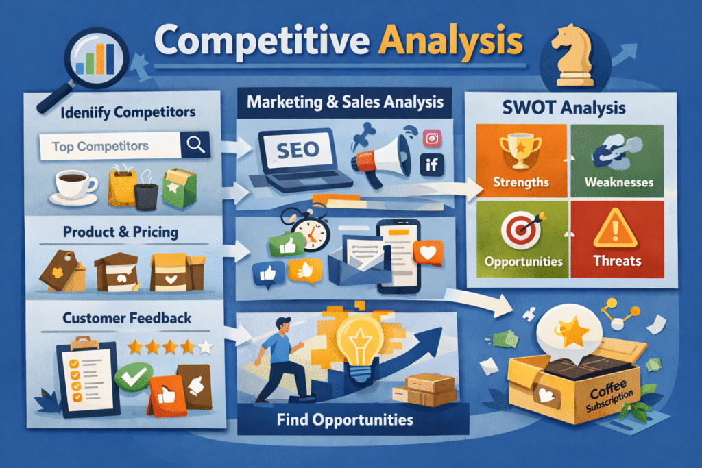 In simple terms, competitive analysis is the structured process of researching your competitors’ products, marketing, sales, and customer experience so you can make smarter decisions for your own business. It’s not about copying others. It’s about learning from the market and identifying opportunities they’ve missed.